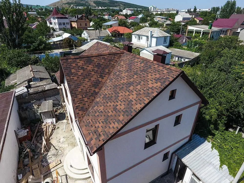 Благодаря выразительной форме гонта и насыщенной цветовой гамме эта модель создает эффект глубины и объема на крыше. Она удачно сочетается как с классической архитектурой, так и с современными проектами. Защищает кровельную конструкцию от любых погодных воздействий и отличается стабильной геометрией элементов.