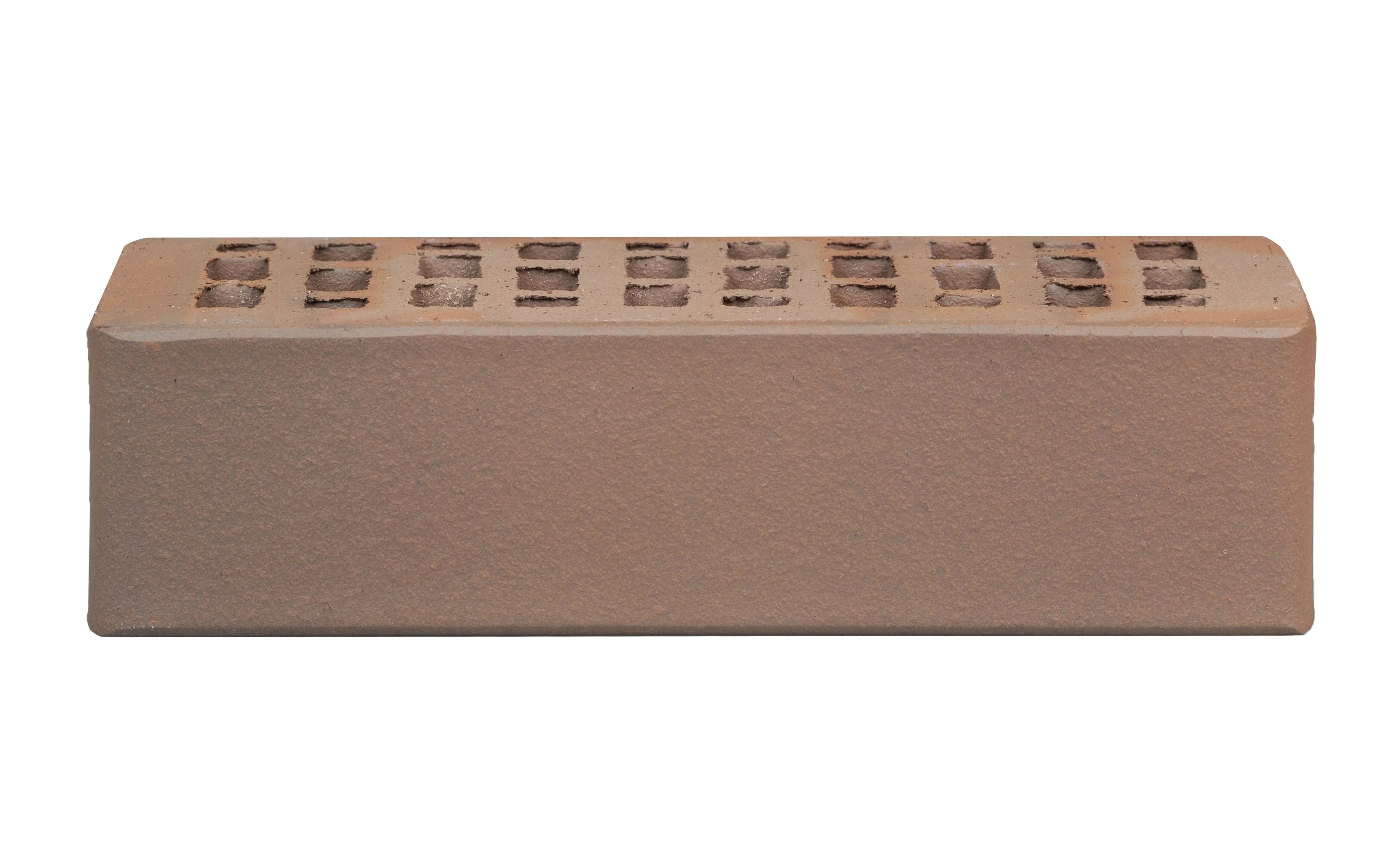 Керамический кирпич светло-коричневого оттенка с эффектом флэша. Гладкая поверхность делает кладку аккуратной и элегантной.