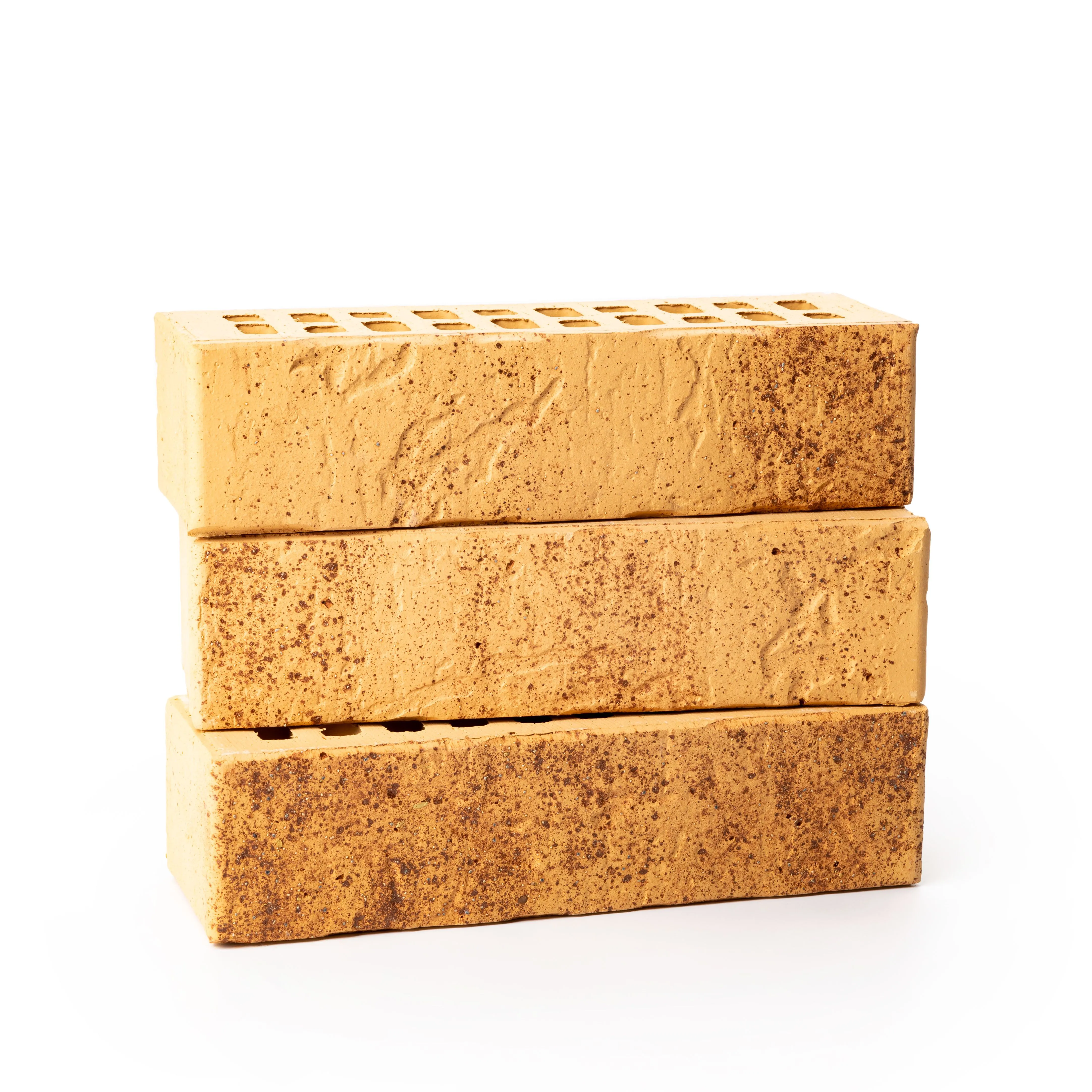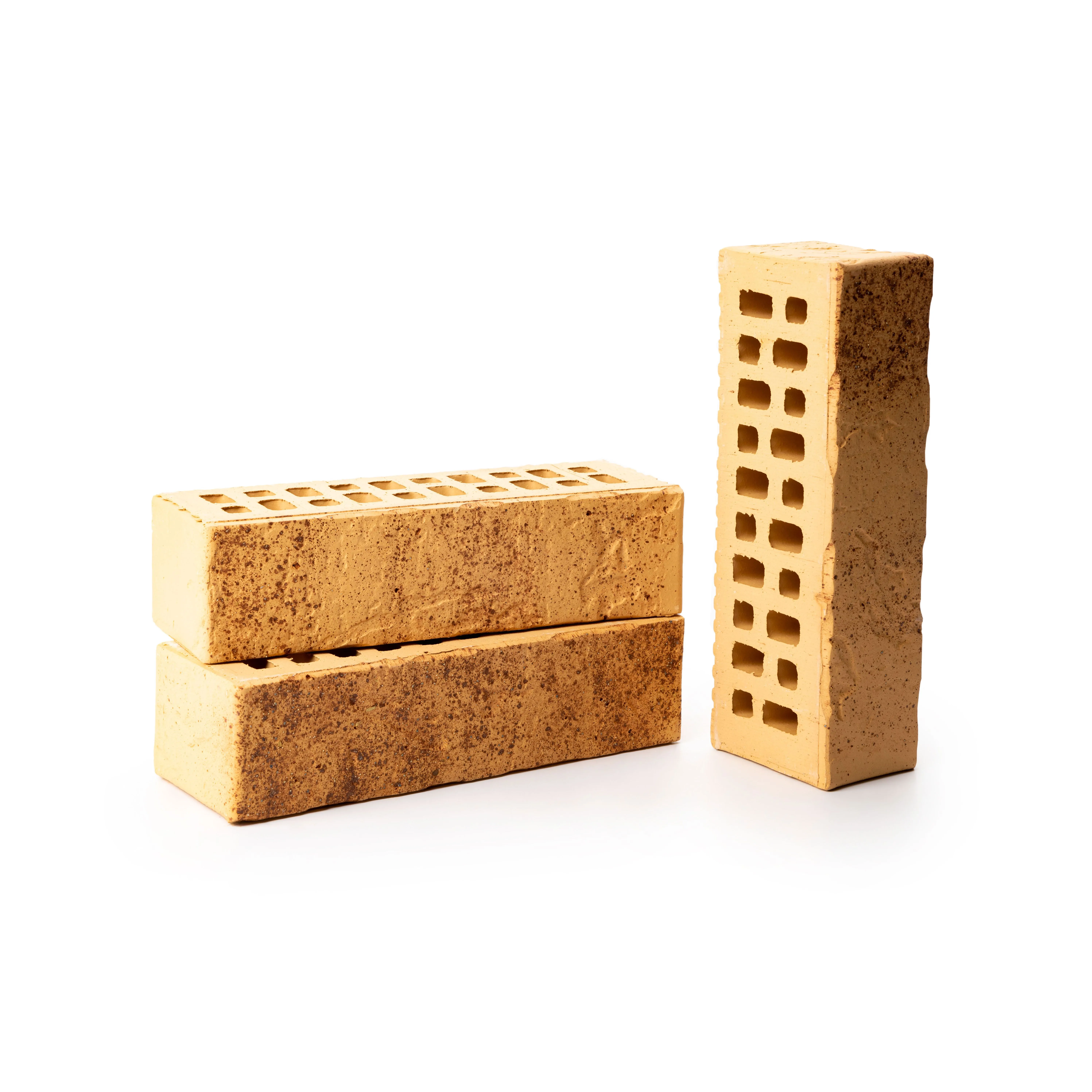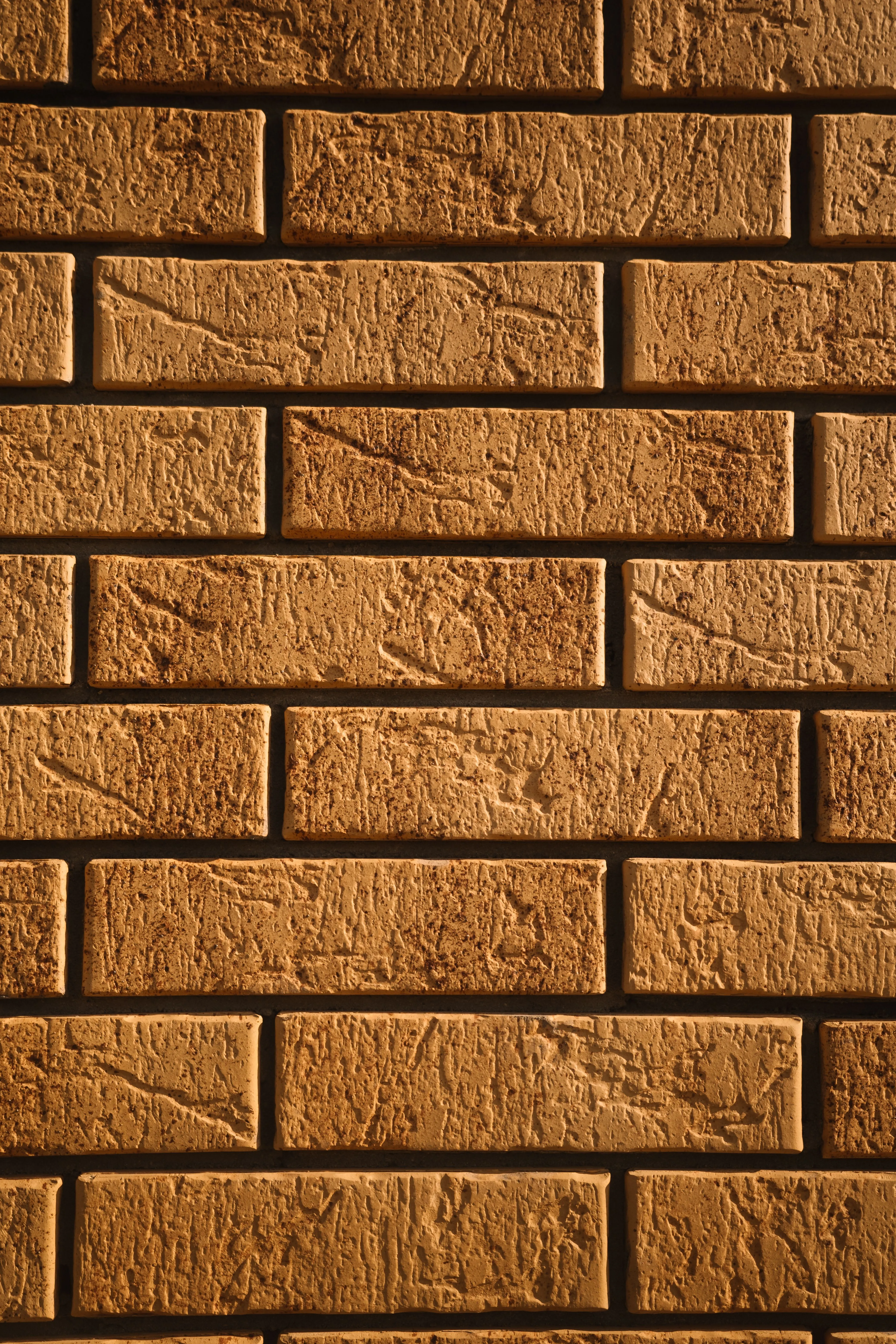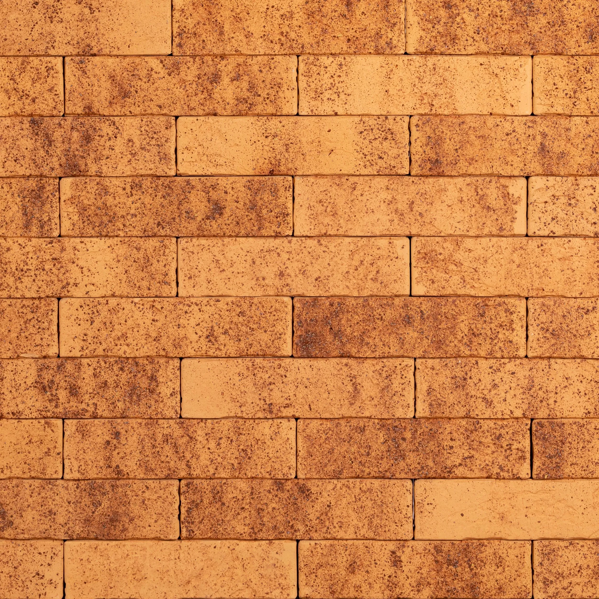 Керамический кирпич теплого терракотового оттенка с фактурной поверхностью «рваная фаска». Создает натуральный и объемный эффект.