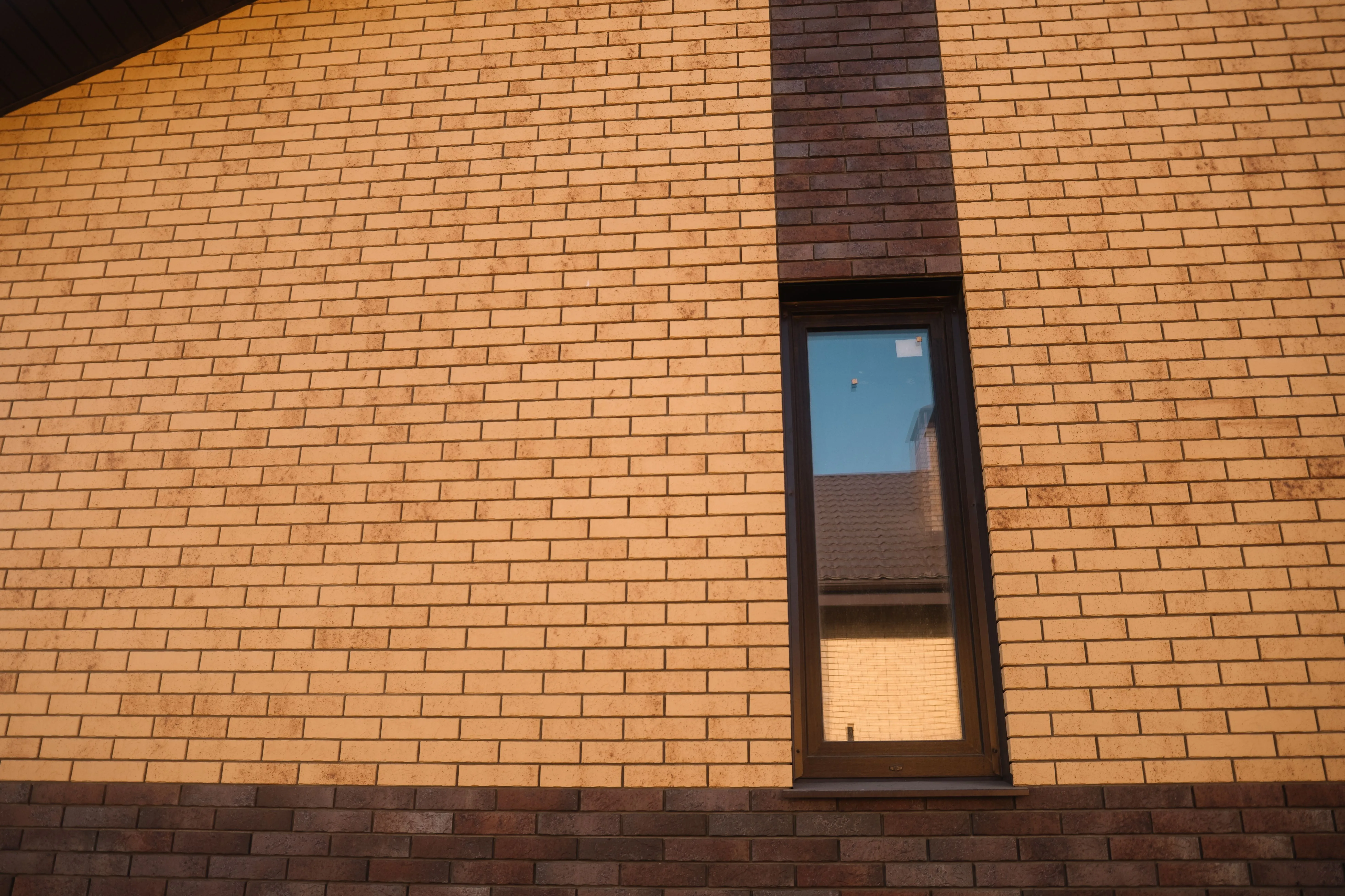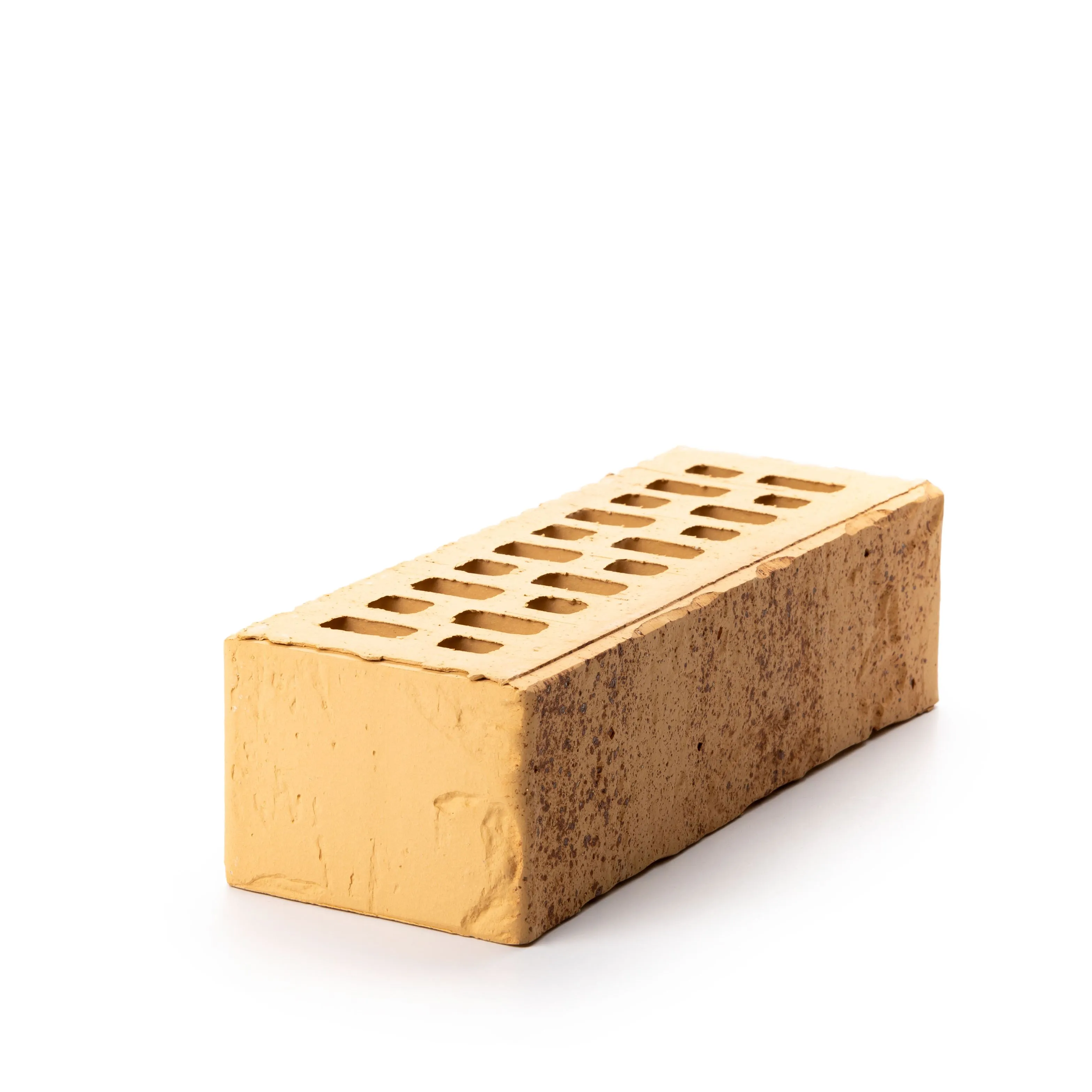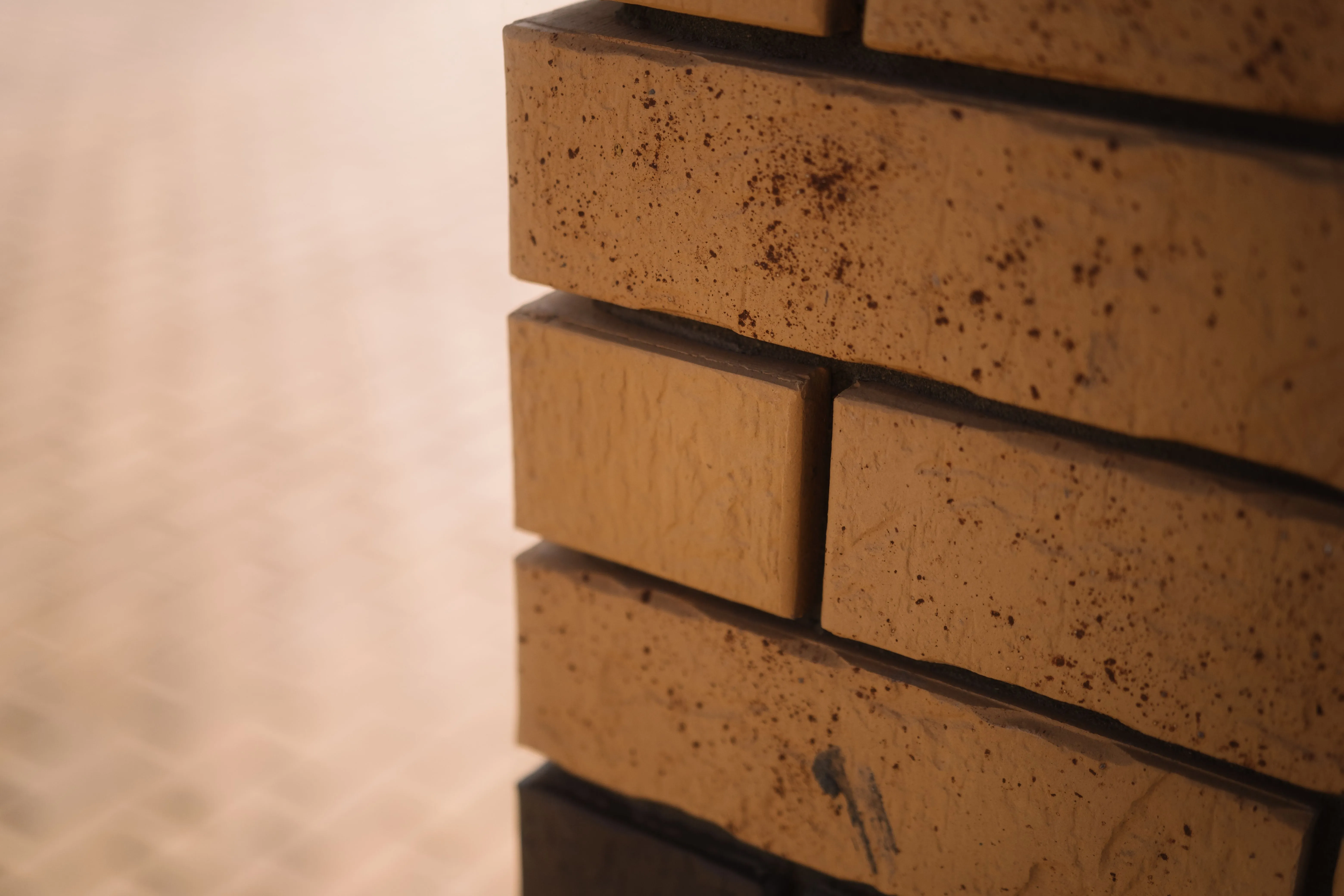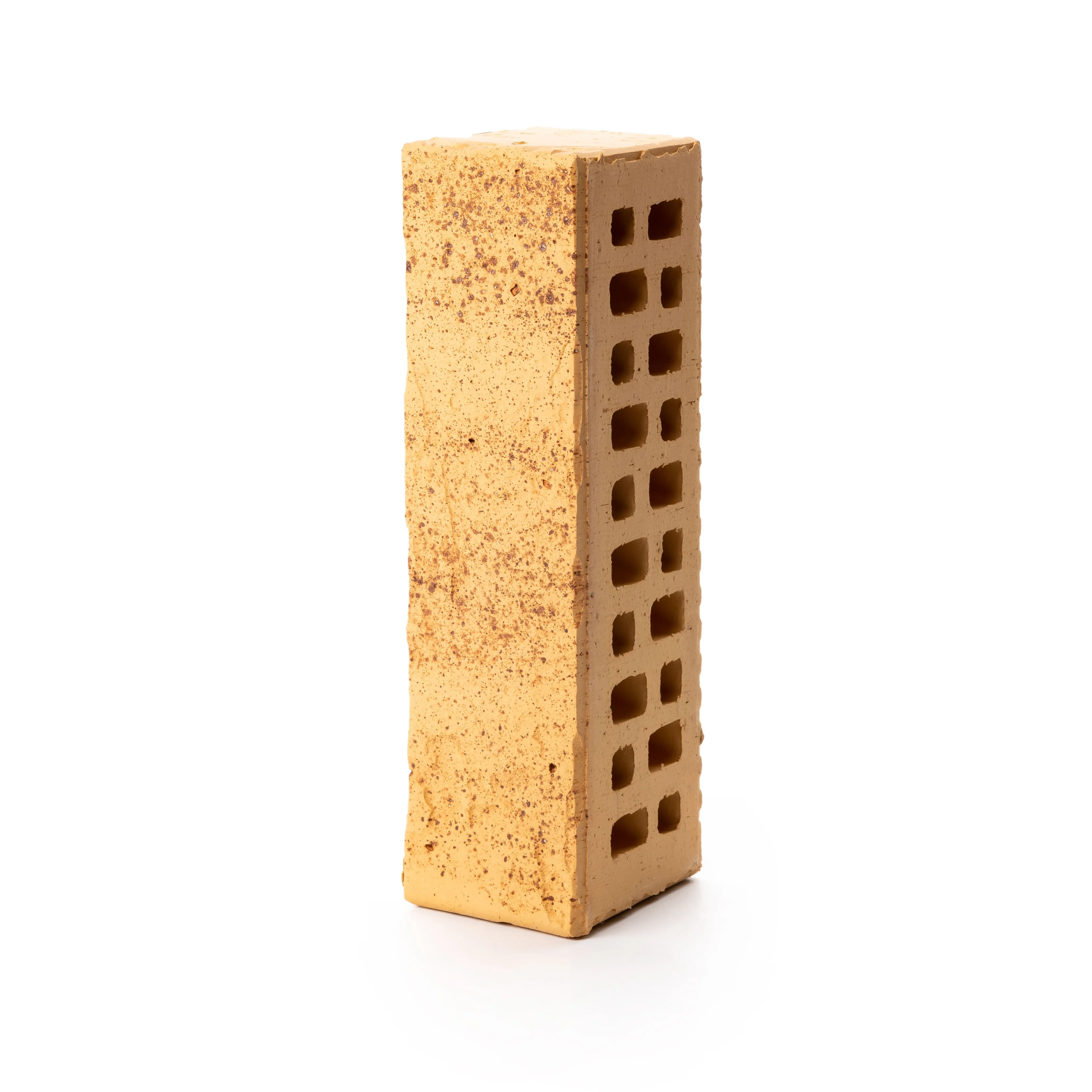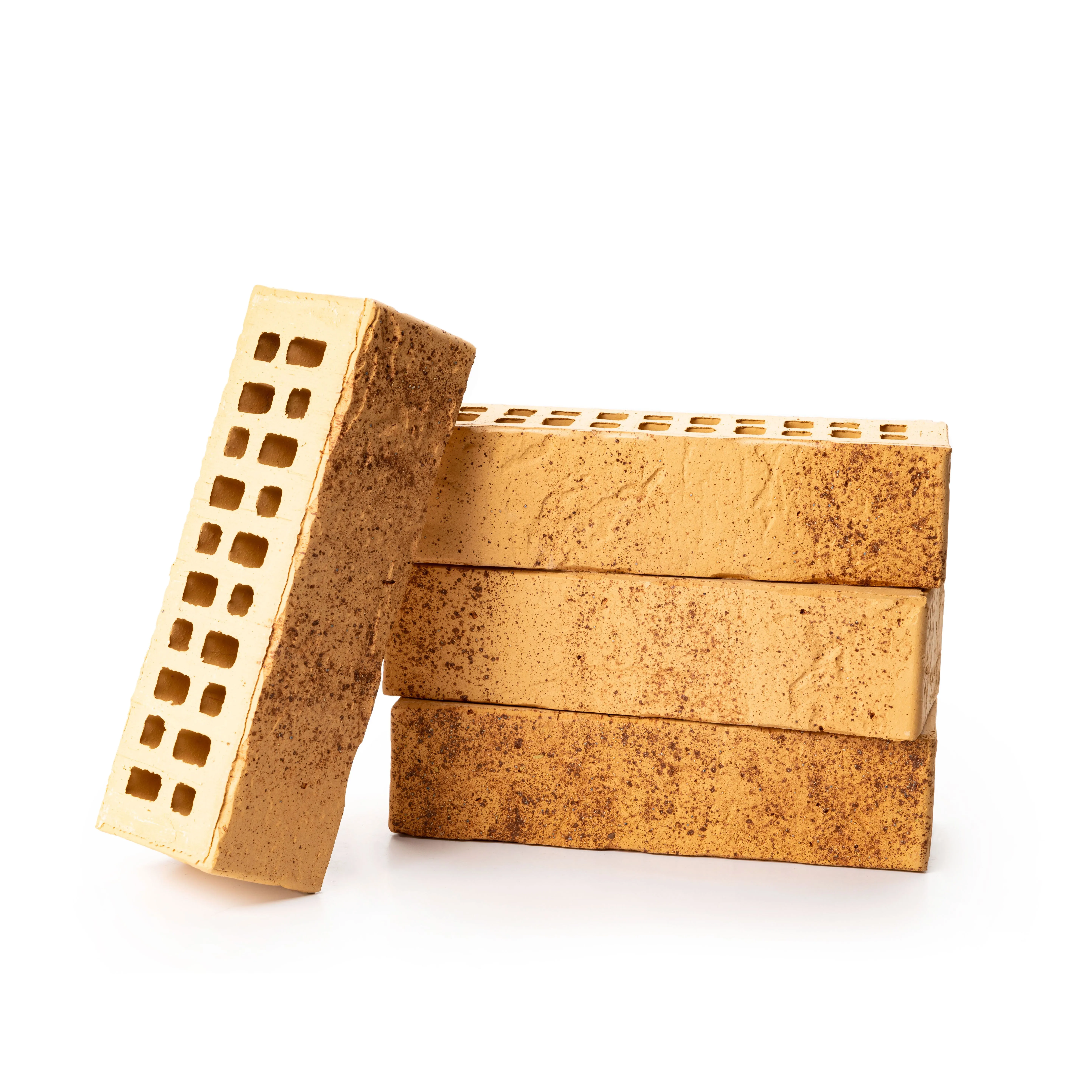 Керамический кирпич теплого терракотового оттенка с фактурной поверхностью «рваная фаска». Создает натуральный и объемный эффект.