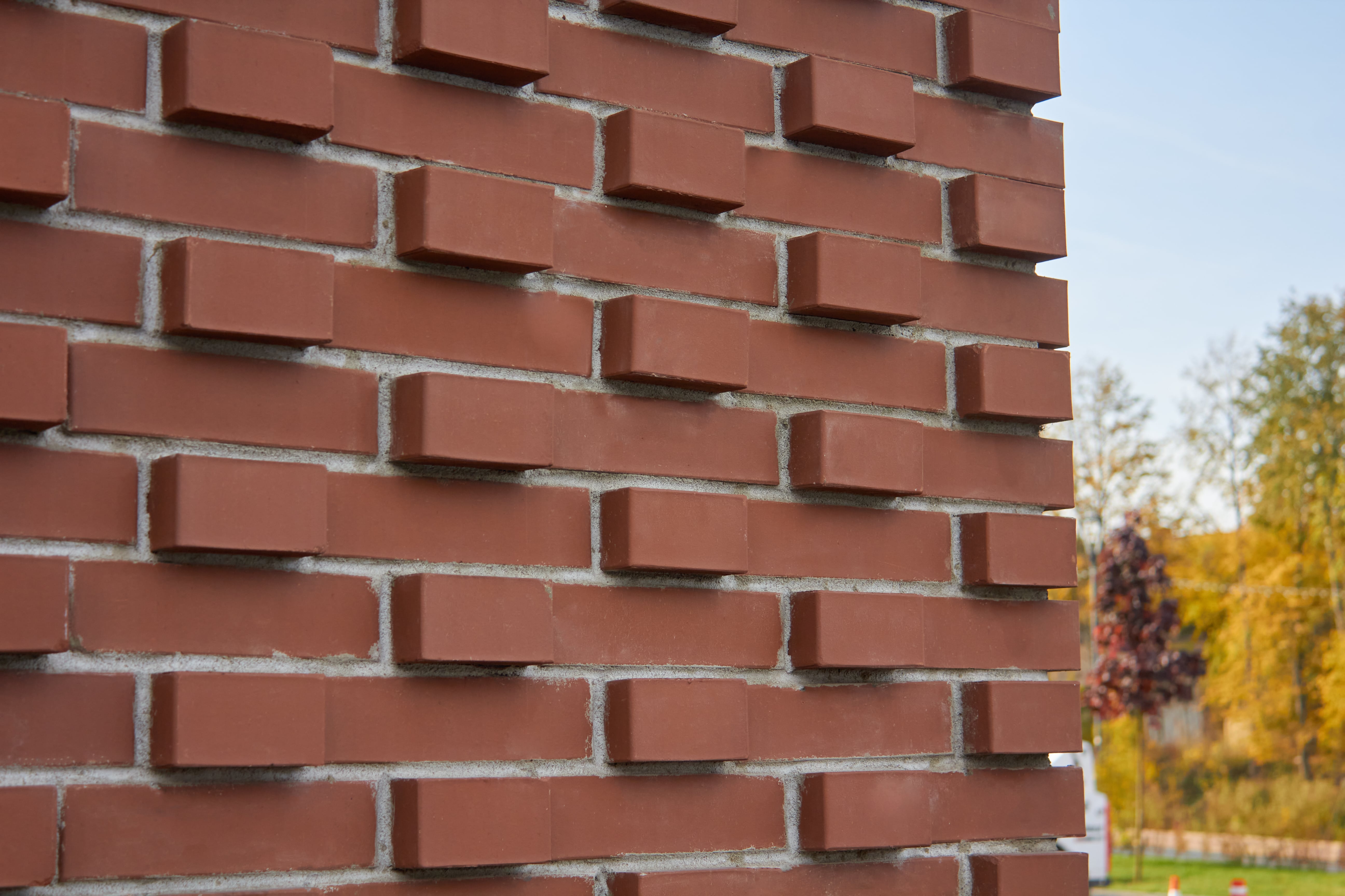 - Глубокий тёмно-красный оттенок — создает эффект дорогой и респектабельной кладки.