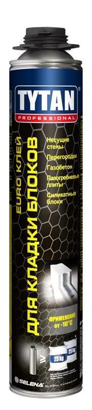 КЛЕЙ ПОЛИУРЕТАНОВЫЙ ДЛЯ КЛАДКИ ГАЗОБЕТОНА TYTAN Professional EURO 870 мл