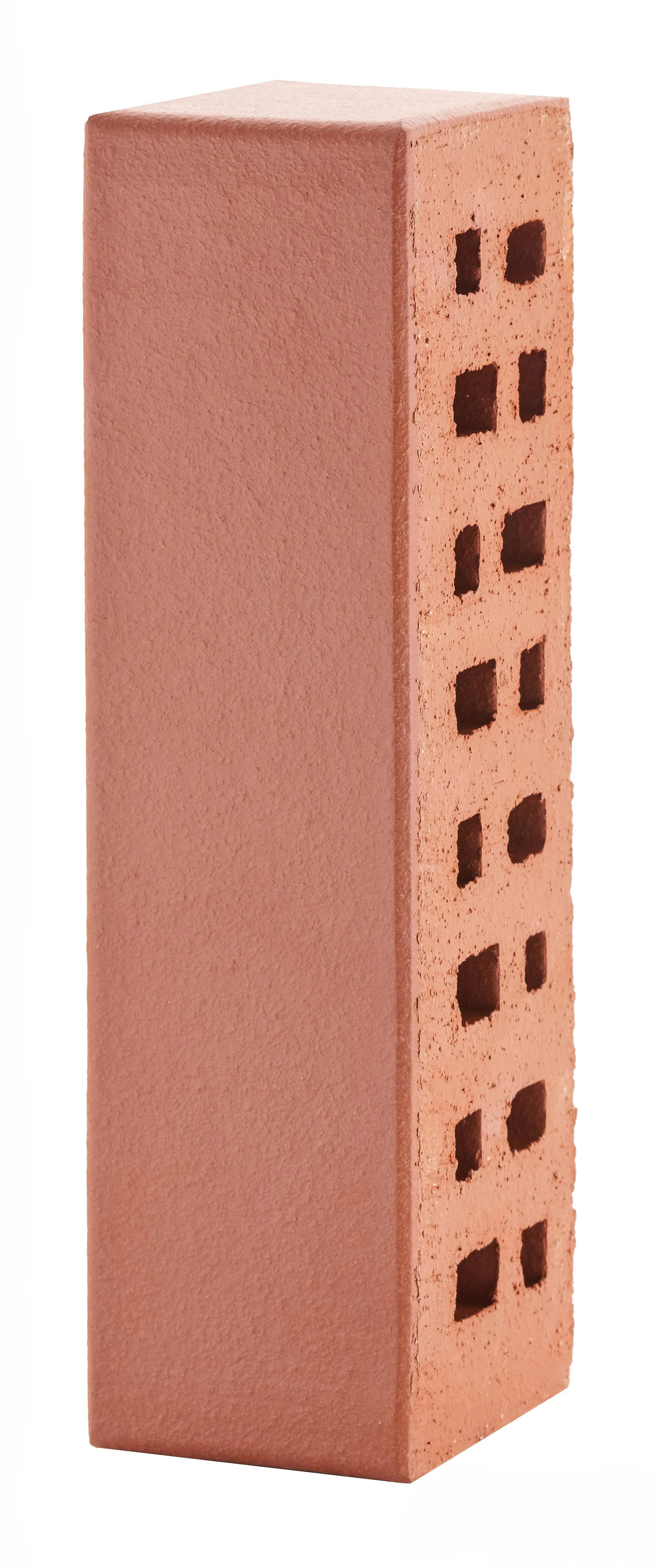 Классический облицовочный кирпич насыщенного красного цвета с гладкой поверхностью. Идеален для создания стильных и лаконичных фасадов.