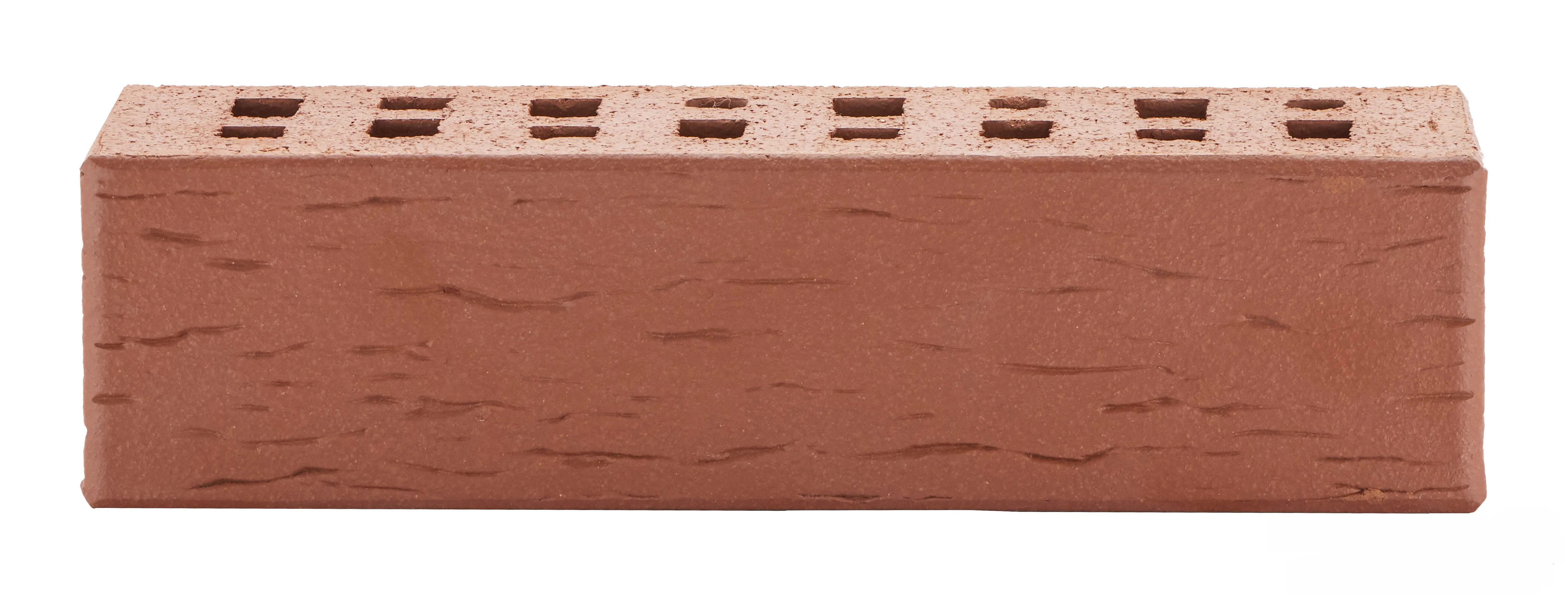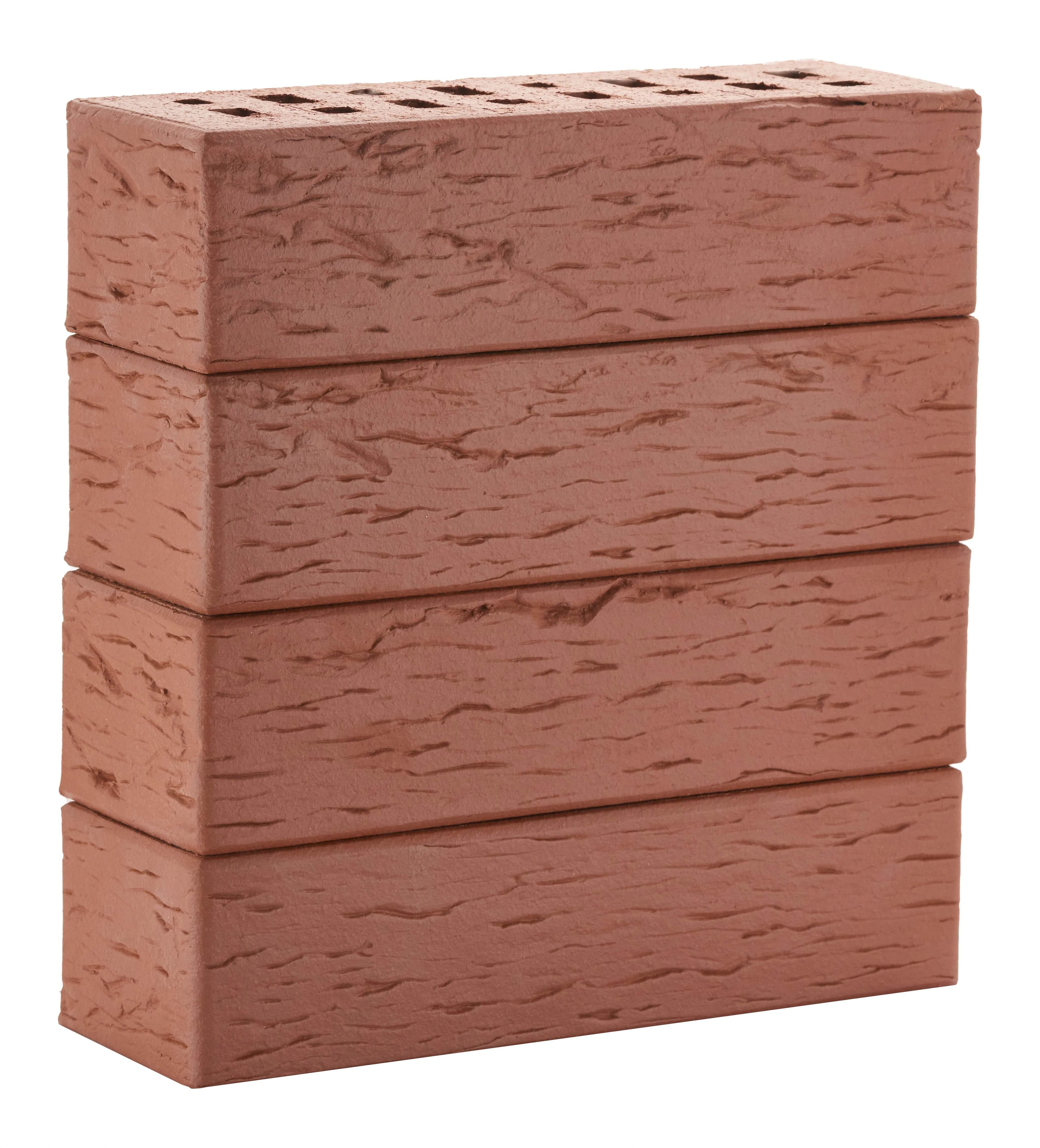 Клинкерный фасадный кирпич глубокого тёмно-красного оттенка с рельефной текстурой «береста». Подходит для создания выразительных фасадов в классическом и готическом стиле.