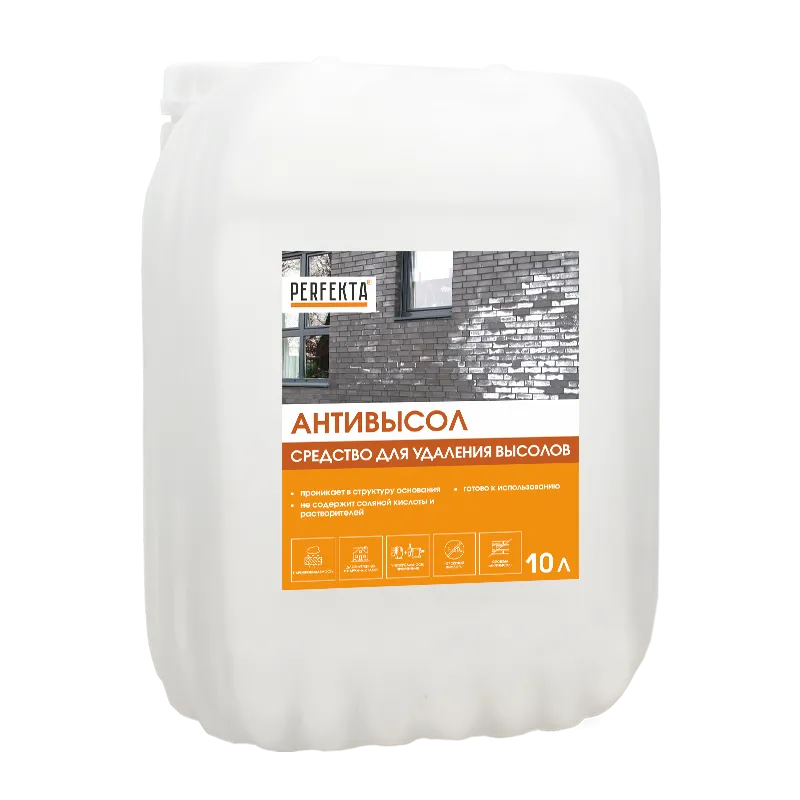 Эффективное кислотное средство для удаления солевых и минеральных отложений с фасадов, кладки и бетонных поверхностей. Быстро растворяет белые высолы, не повреждая структуру облицовочного материала. Средство готово к применению и легко наносится, обеспечивая чистоту и эстетичный вид конструкций.